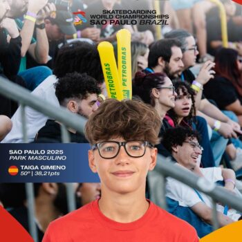 El skater valencià Taiga Gimeno ha participat en el Campionat del Món de skateboarding celebrat recentment a São Paulo (Brasil), on ha representat Espanya en la modalitat de park, competint amb alguns dels millors especialistes del món. Taiga ha aconseguit una meritòria 50a posició, en una competició de màxim nivell internacional que ha reunit a …