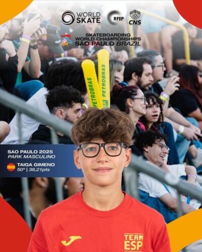 El skater valencià Taiga Gimeno ha participat en el Campionat del Món de skateboarding celebrat recentment a São Paulo (Brasil), on ha representat Espanya en la modalitat de park, competint amb alguns dels millors especialistes del món.