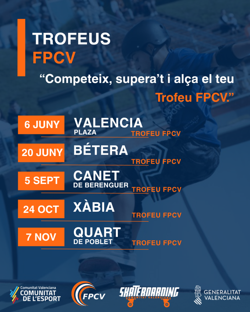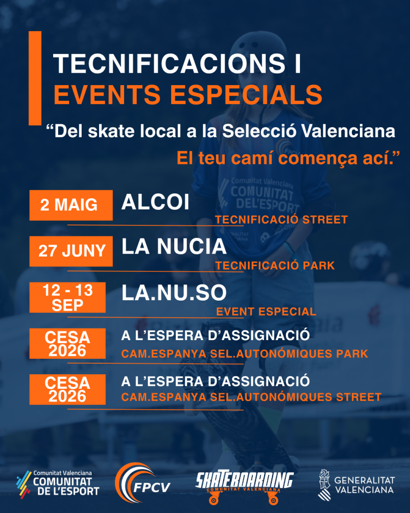 Amb aquest calendari, la Federació de Patinatge de la Comunitat Valenciana reafirma la seva aposta per un model esportiu estructurat, que permet detectar nous talents, millorar el nivell competitiu i consolidar el skateboarding com una disciplina en creixement dins del territori valencià.