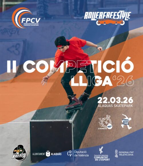 La Lliga de Roller Freestyle de la Comunitat Valenciana (Roller Freestyle CV) continua el seu ascens imparable. Aquest diumenge, 22 de març, l’Skatepark d’Alaquàs serà l’escenari de la segona parada del calendari oficial de 2026, una jornada que ja ha fet història abans de començar en superar totes les previsions d’assistència.