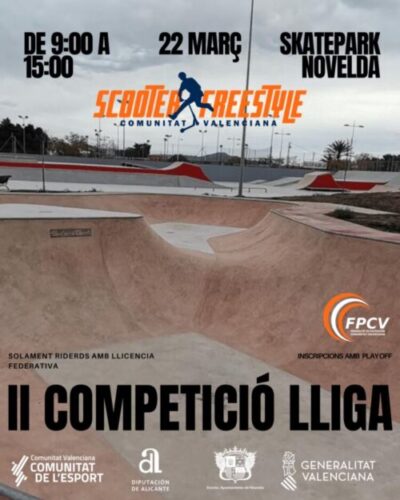 Durant la jornada, que tindrà lloc de 9:00 a 15:00, els riders tornaran a demostrar el seu talent i el seu estil en una competició que continua consolidant-se com una de les referències del scooter freestyle a la Comunitat Valenciana. Aquesta segona prova serà també una nova oportunitat per sumar punts en la classificació general de la lliga i continuar impulsant el creixement d’aquesta disciplina esportiva.